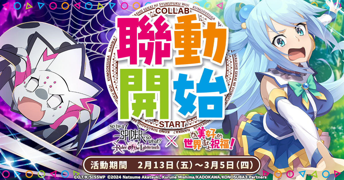 「轉生成蜘蛛又怎樣!迷宮的支配者」與動畫「為美好的世界獻上祝福!」的聯動活動已開啟。